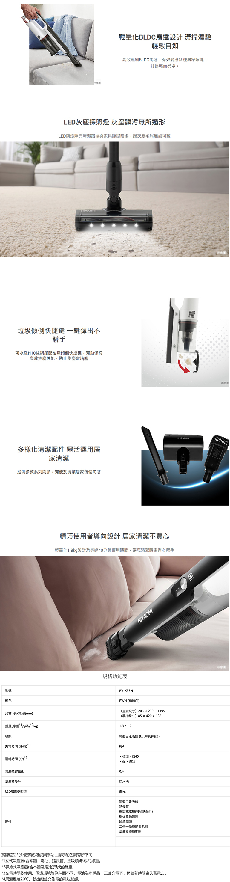 ■ LED灰塵探照燈+電動吸頭,清掃零死角