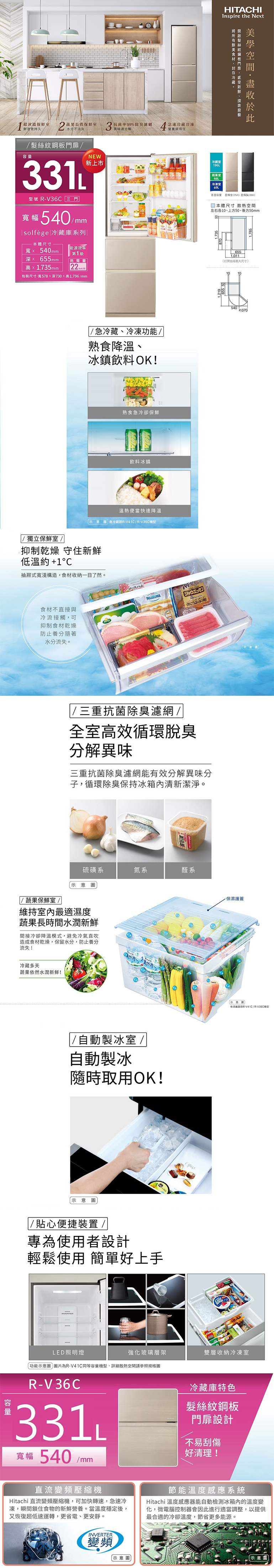 ・三重抗菌除臭濾網,有效分解異味,保持冰箱內部清新。