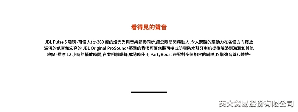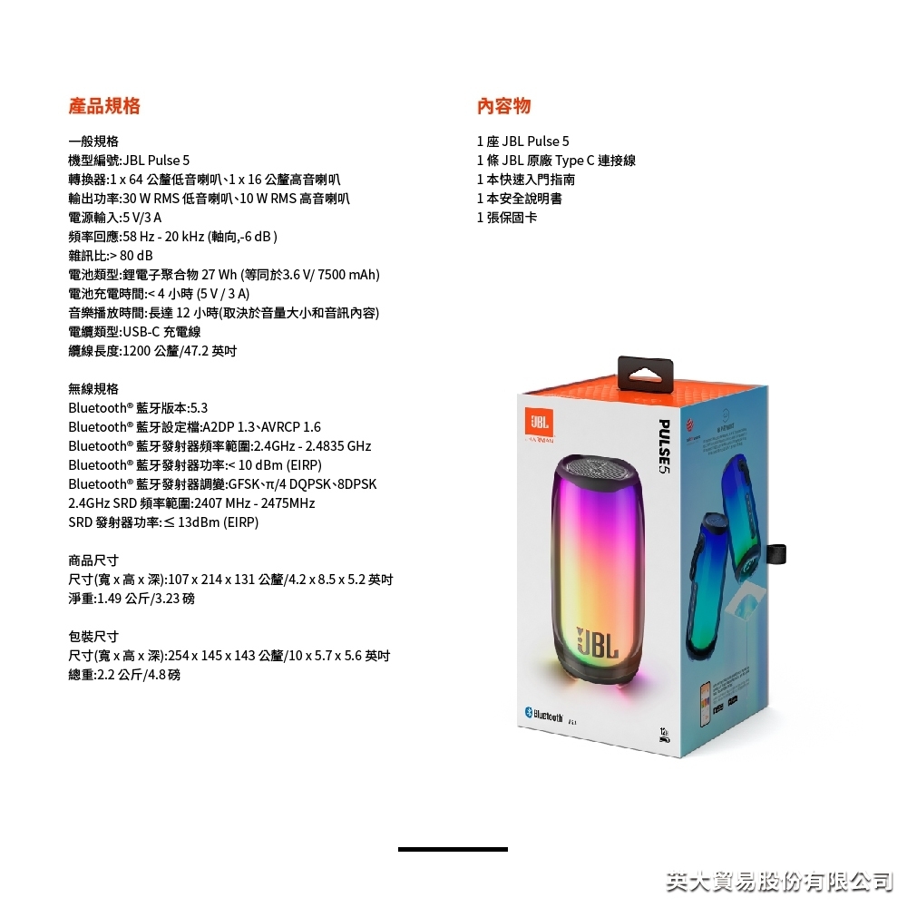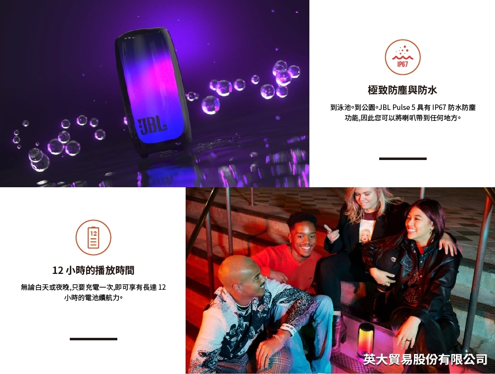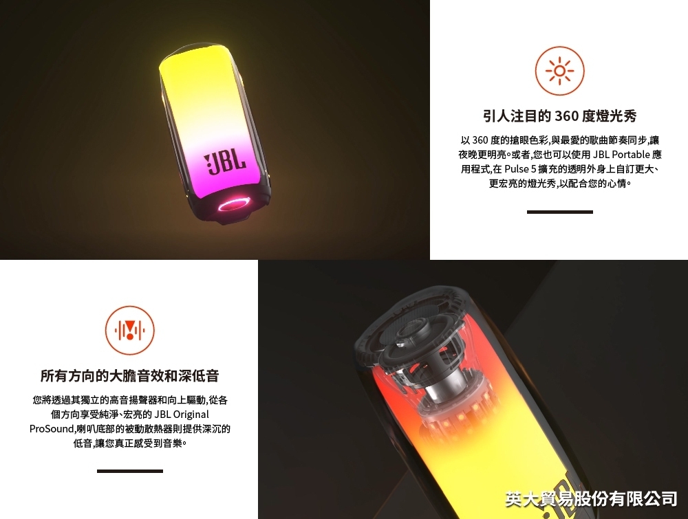 JBL 炫彩防水可攜式藍牙喇叭 PULSE 5