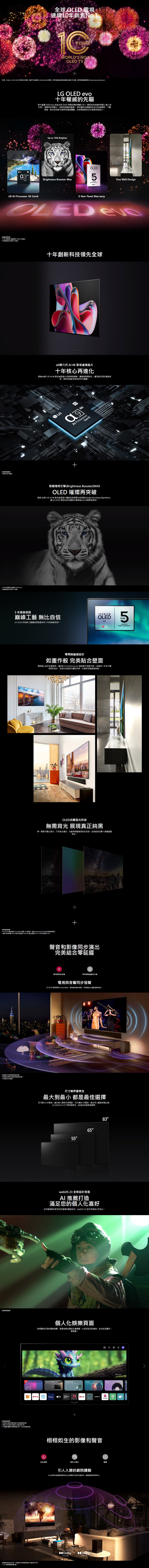 ★ 全球 OLED 電視連續十年銷售 NO.1,零間隙極美壁掛,好評推薦