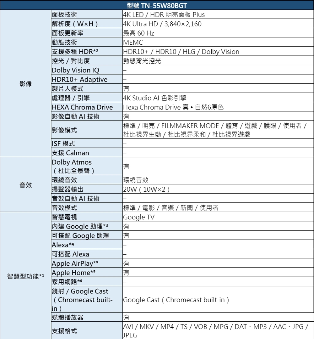 Panasonic 國際牌 吋55 4K HDR Google TV聯網顯示器 TN-55W80BGT【只送不裝】