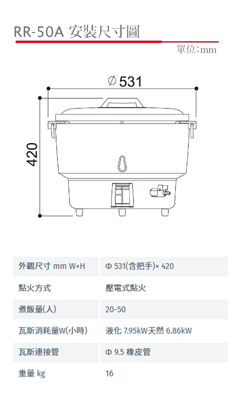 50人份熱脹器式瓦斯煮飯鍋