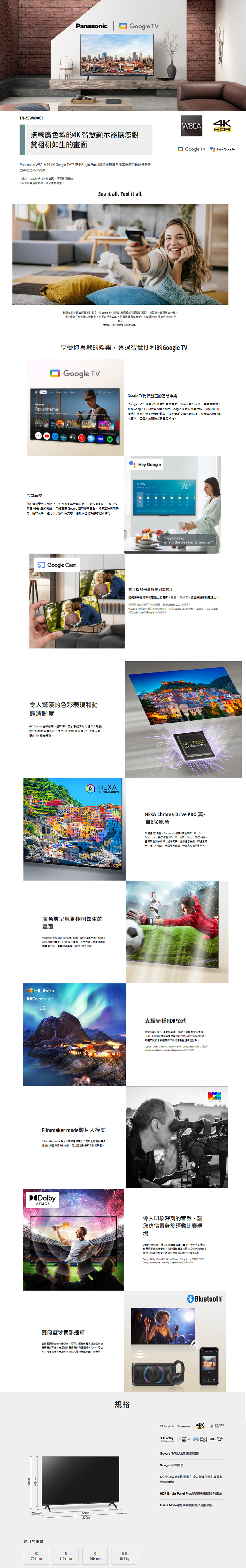 Panasonic W80 系列 4K Google TV™ 搭載HDR Bright Panel Plus ,讓您在觀賞各種串流節目時能體驗更豐富的色彩和亮度。