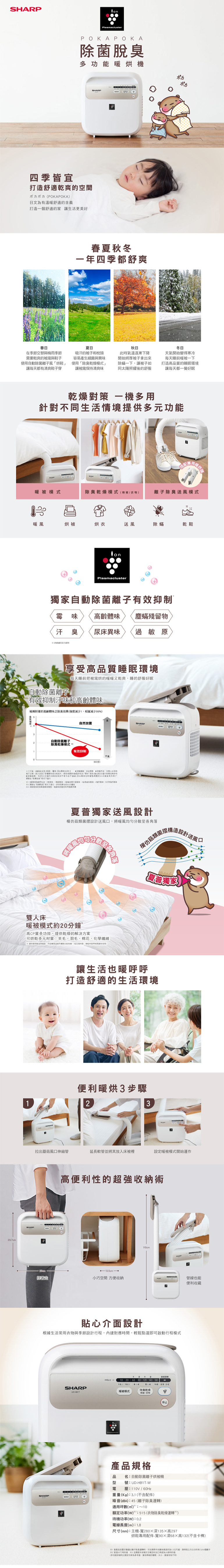 多種功能模式(暖被,寢具乾燥,除蟎,除箘離子送風,乾衣/鞋)