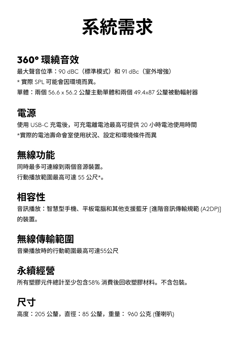 20小時的電池續航力享受無線