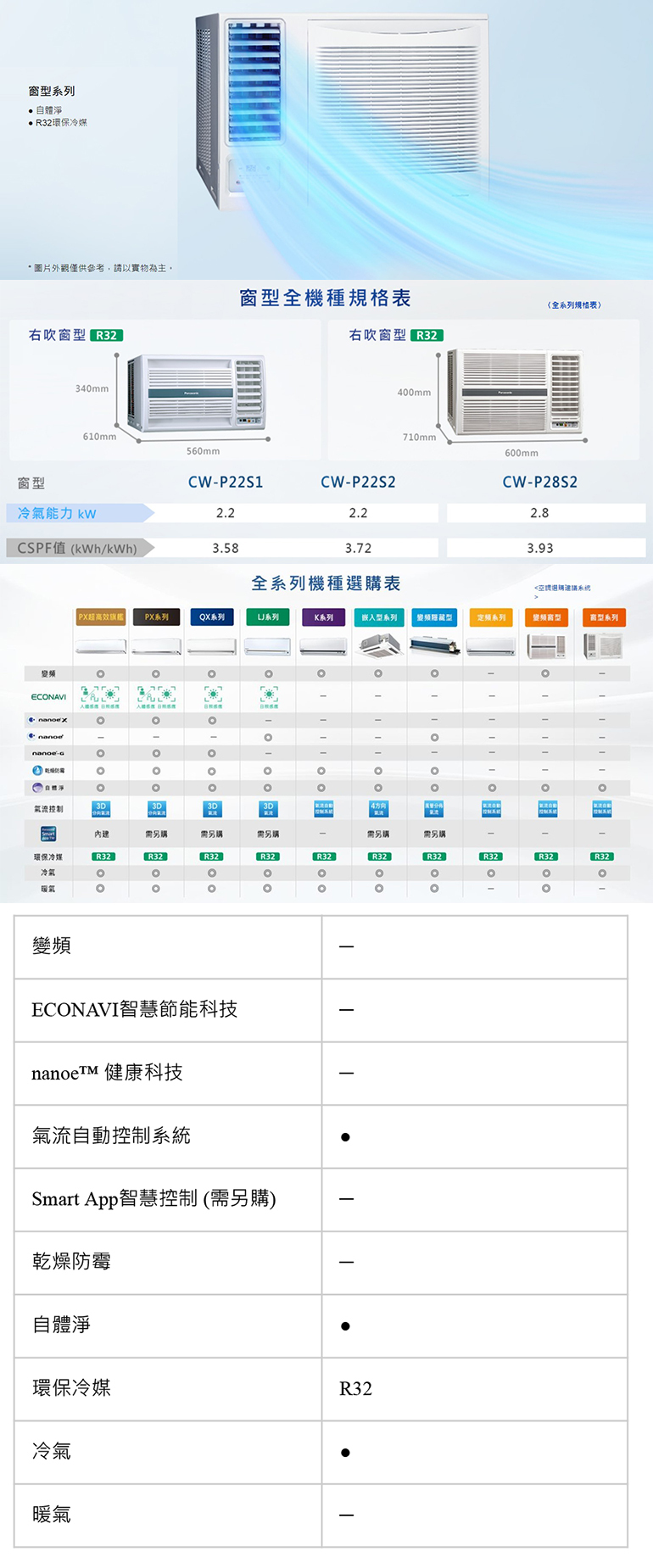 [Panasonic 國際牌]2-4坪 窗型定頻冷專空調-右吹 CW-P22S2
