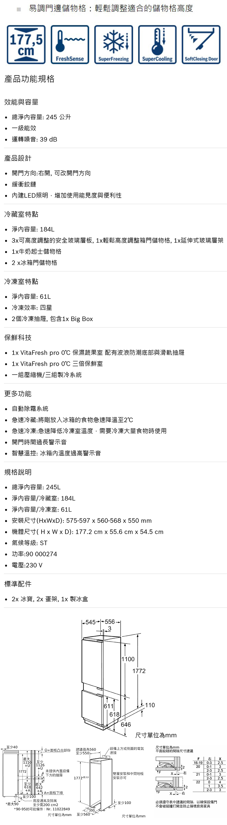 ★ 智慧溫控: 冰箱內溫度過高警示音