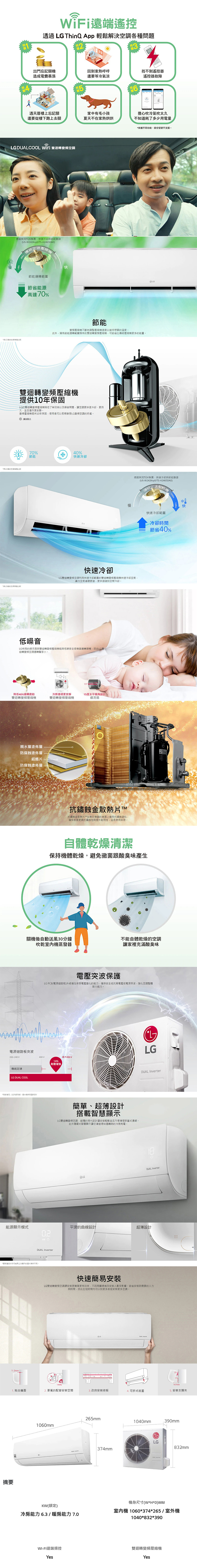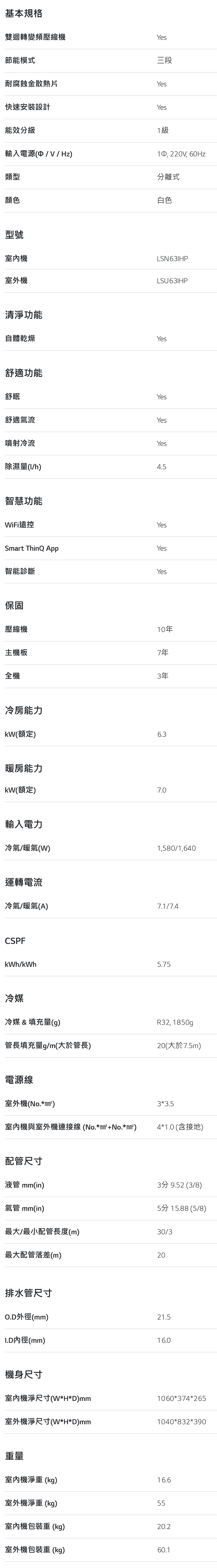 [LG 樂金]7-10坪 經典系列 DUALCOOL WiFi雙迴轉變頻冷暖空調 LSU63IHP/LSN63IHP
