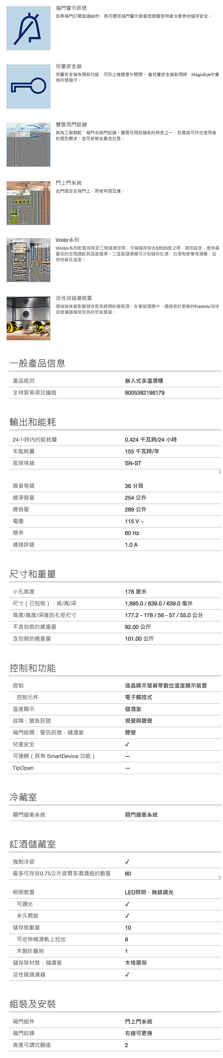 • 酒櫃最大儲存瓶數(750cc/瓶):80瓶