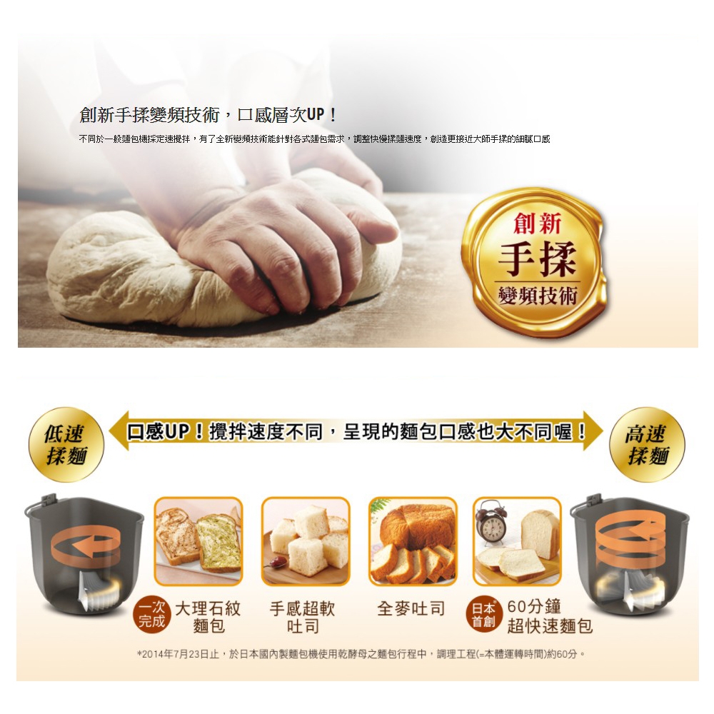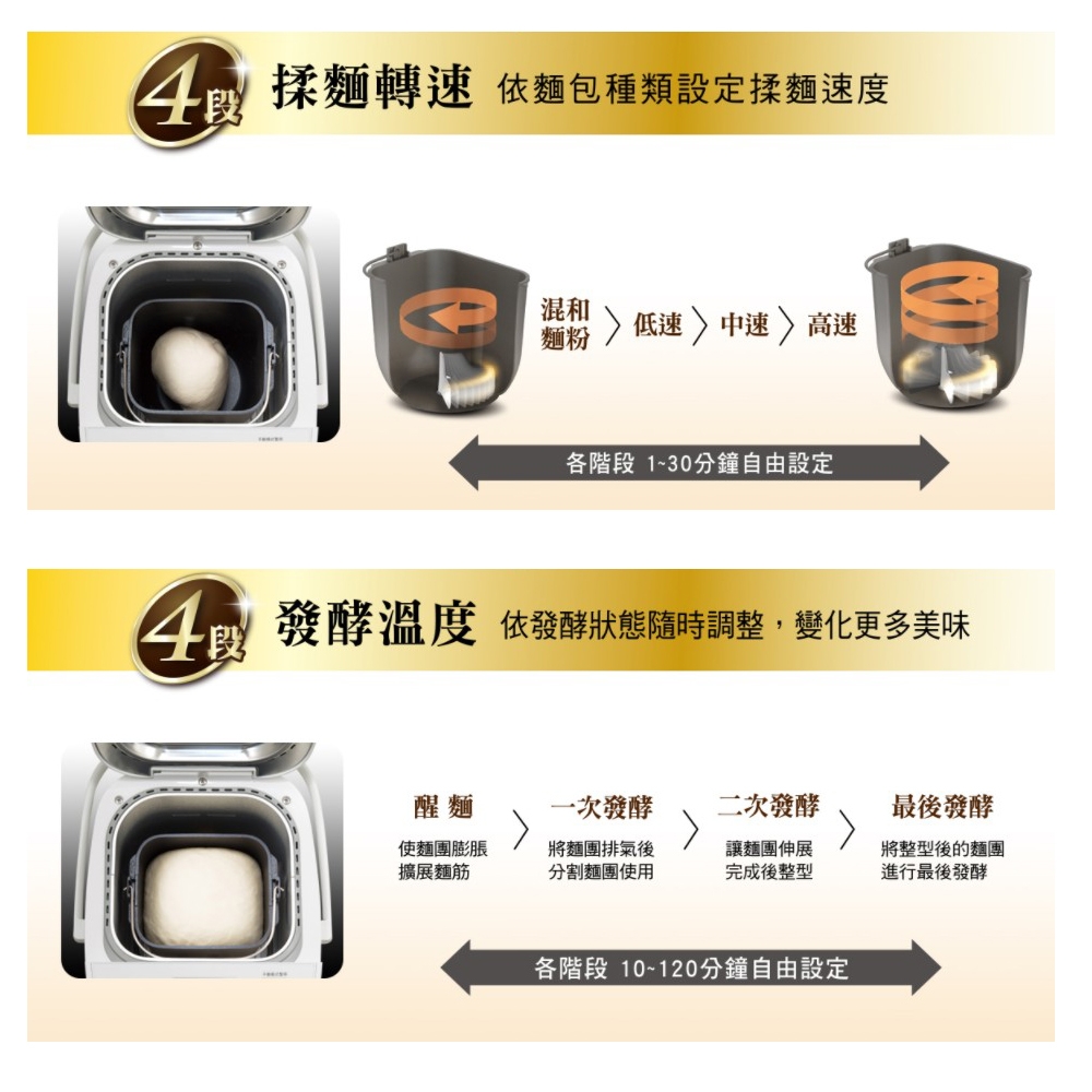 -搭載手動模式,揉麵、發酵、烘焙各自調整