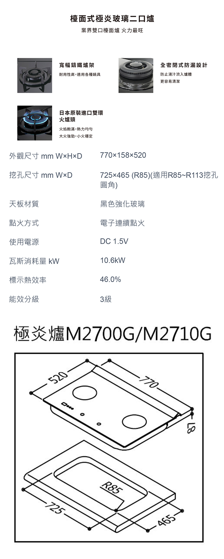 [Rinnai 林內]檯面式極炎玻璃雙口爐 RB-M2700G(B)
