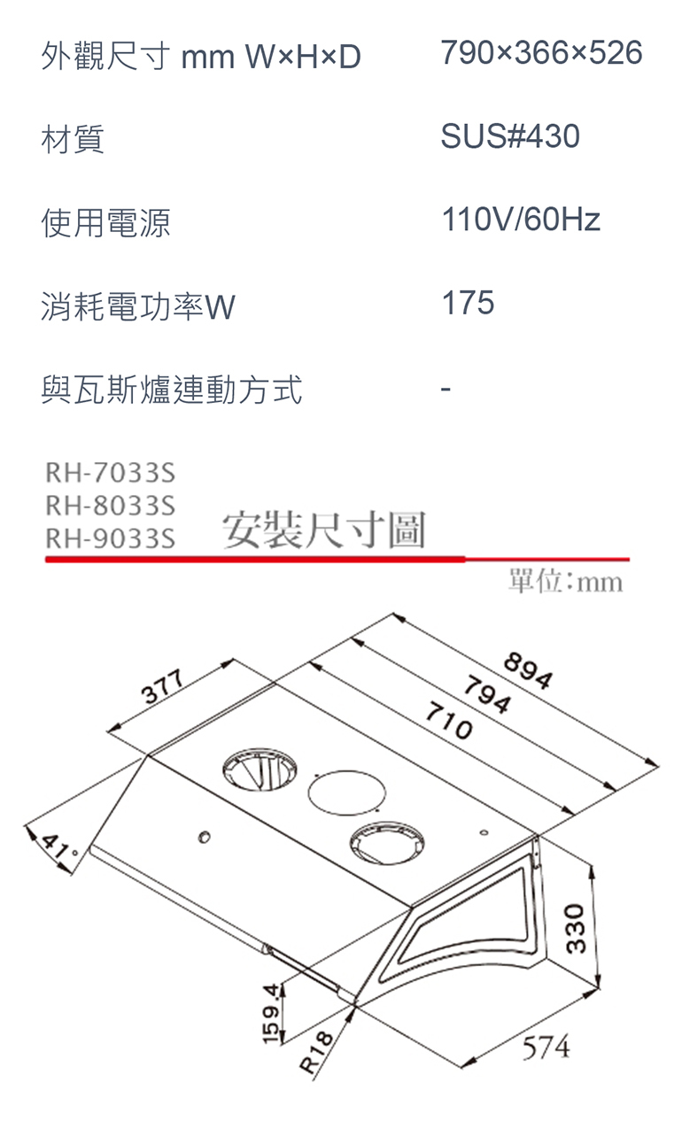 [Rinnai 林內]深罩式水洗電熱除油排油煙機 RH-8033S