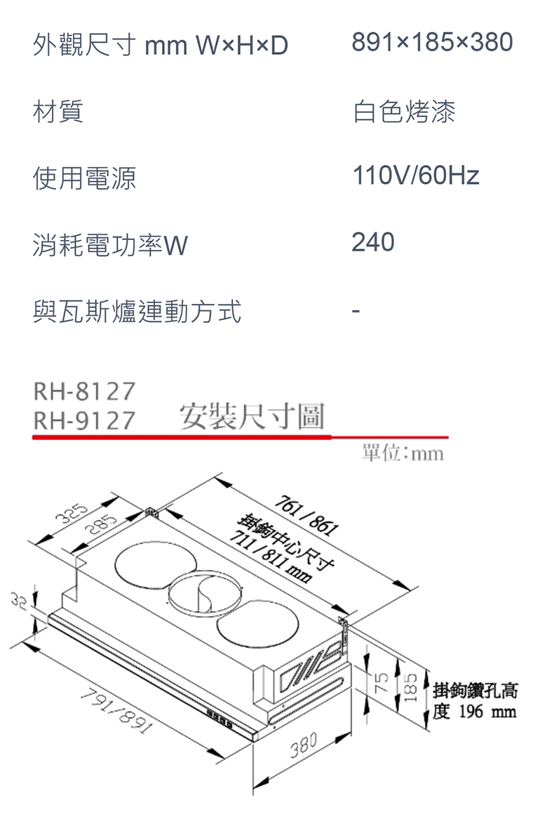 [Rinnai 林內]隱藏式超薄設計電熱除油排油煙機 RH-9127