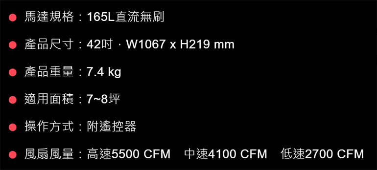 ●馬達規格:165L直流無刷