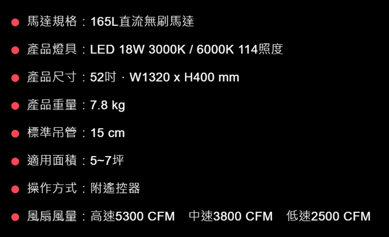 ●風扇風量:高速5300 CFM 中速3800 CFM 低速2500 CFM