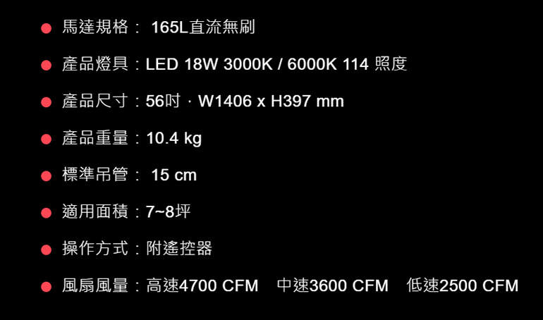 ●風扇風量:高速4700 CFM、中速3600 CFM、低速2500 CFM