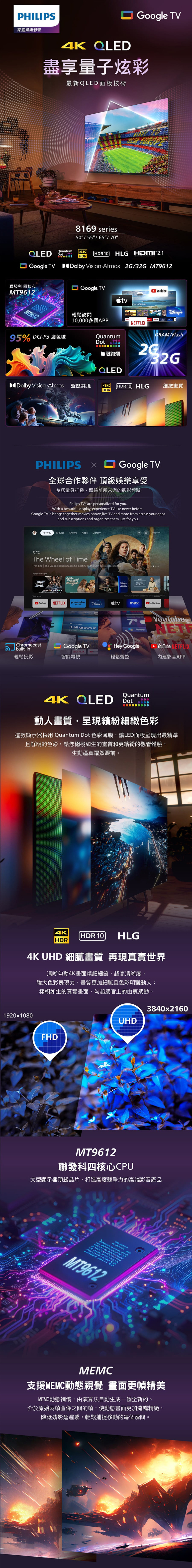 【不含安裝】[PHILIPS 飛利浦]70型 4K Google聯網QLED顯示器 70PQT8169