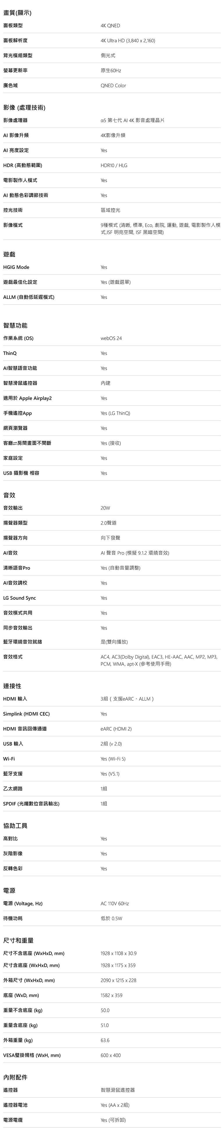 【不含安裝】[LG 樂金]86吋 QNED 量子奈米 4K AI 語音物聯網 86QNED80TTA
