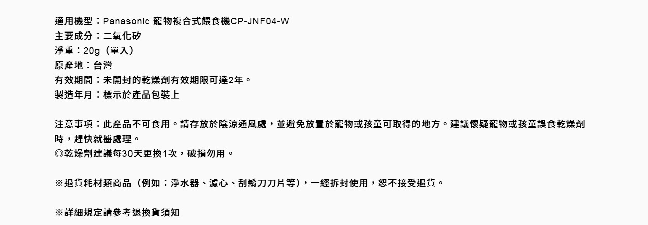 Panasonic 國際牌 寵物餵食機專用乾燥劑(三入裝) CP-JNF04FT1