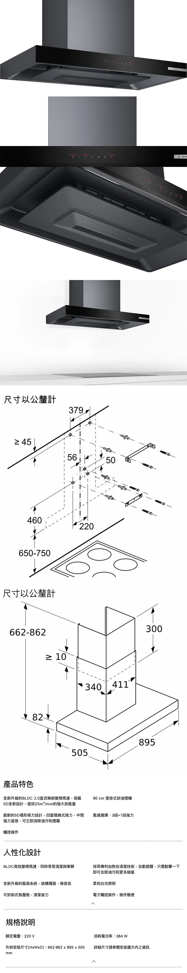 ◆90 cm 壁掛式排油煙機