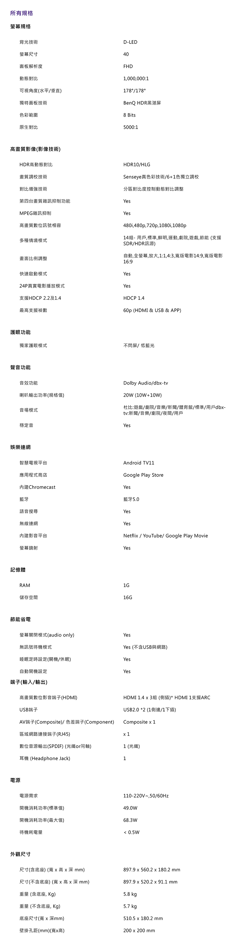 【不含安裝】[BenQ 明基]40型 Android 11 追劇護眼大型液晶 E40-530