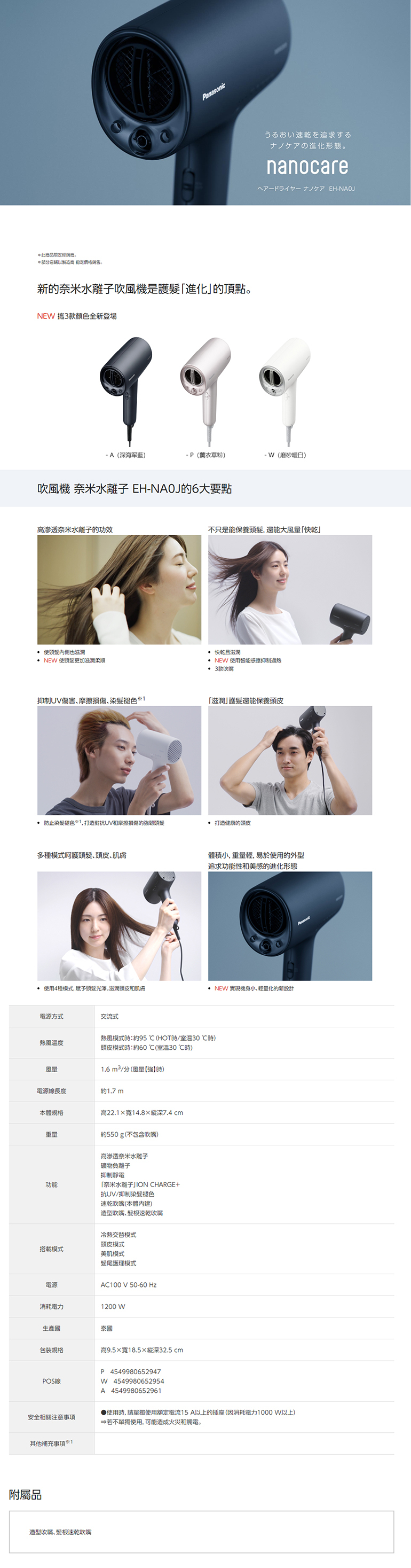 ● 內建速乾吹嘴,內附造型、集風速乾吹嘴及捲髮定型烘罩。