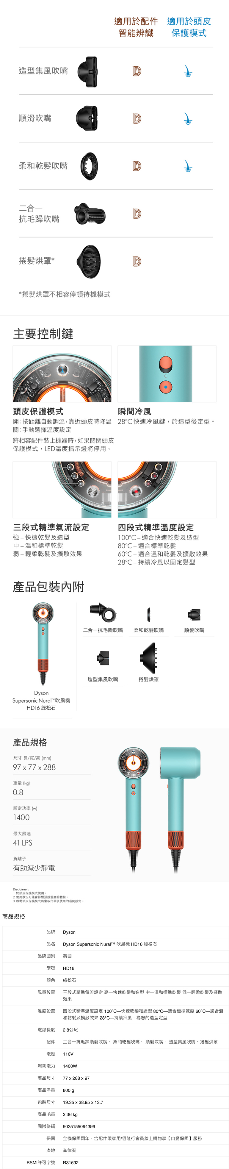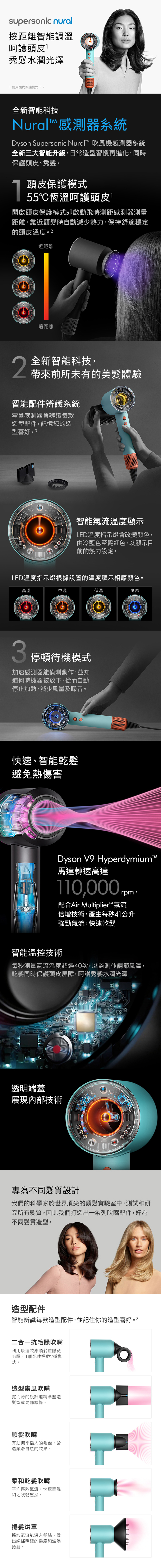 這款智慧吹風機運用創新Dyson科技,不論是以透明端蓋、LED 膠囊燈顯示,或隱藏在手柄中。