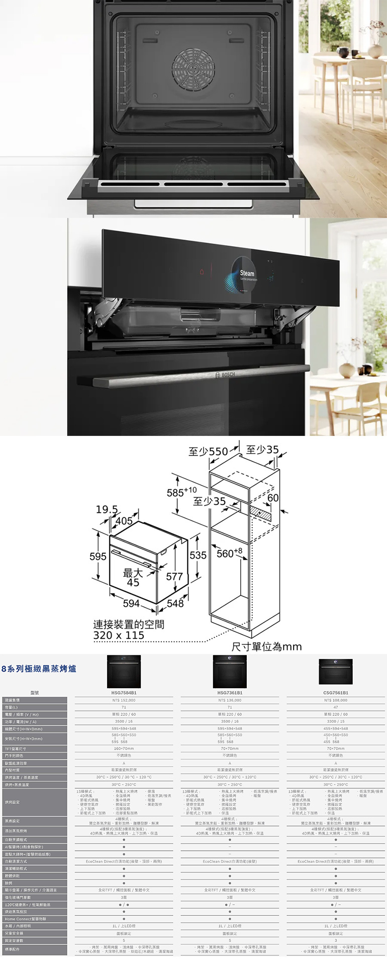 添加蒸氣烘烤 4種模式(搭配3種蒸汽強度):4D熱風 / 熱風上火燒烤 / 上下加熱 / 保溫