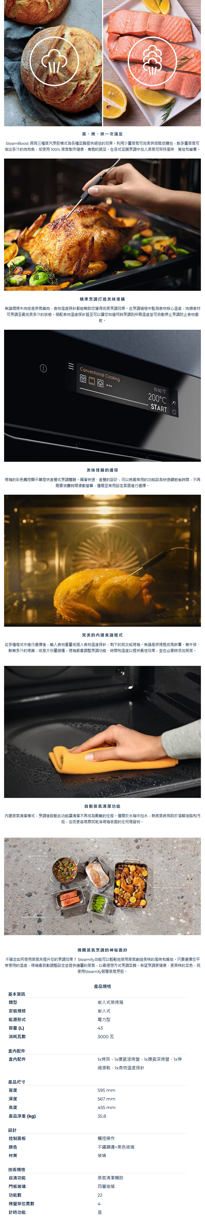 ■ 43公升內嵌式蒸氣烤箱,歐洲製造