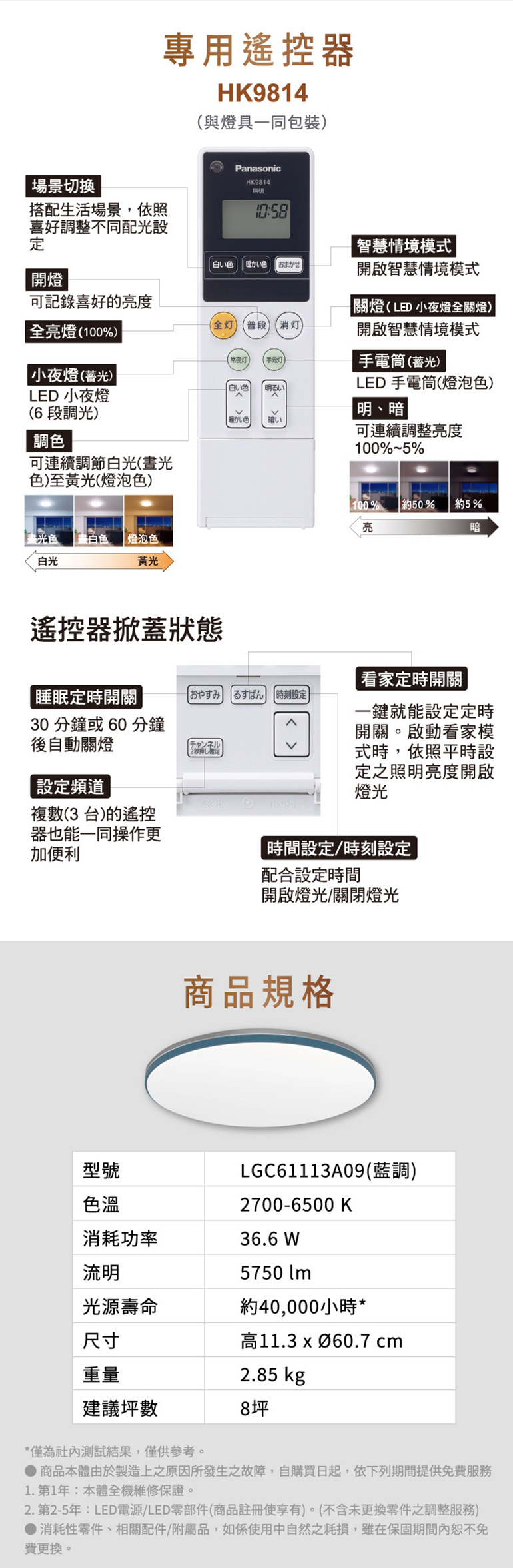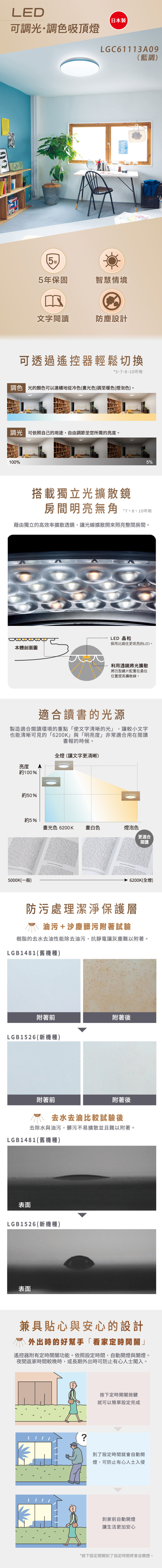 [Panasonic 國際牌]8坪 LED可調光 調色遙控吸頂燈 藍調 LGC61113A09