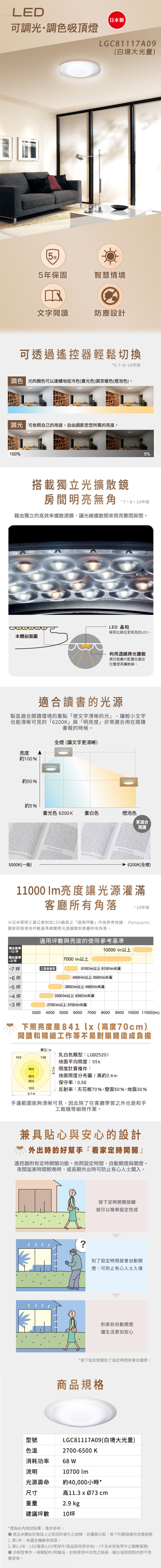 [Panasonic 國際牌]8坪 LED可調光 調色遙控吸頂燈 白境大光量 LGC81117A09