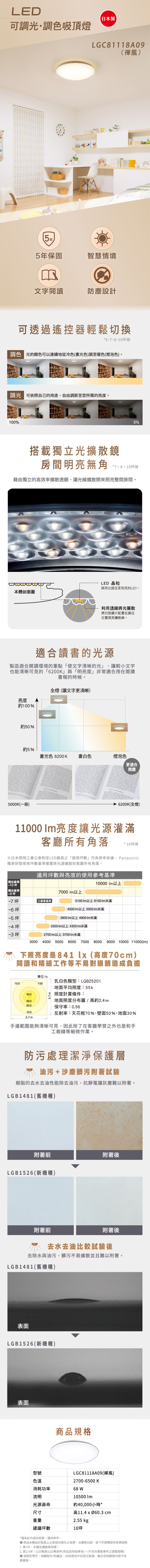 [Panasonic 國際牌]8坪 LED可調光 調色遙控吸頂燈 禪風 LGC81118A09
