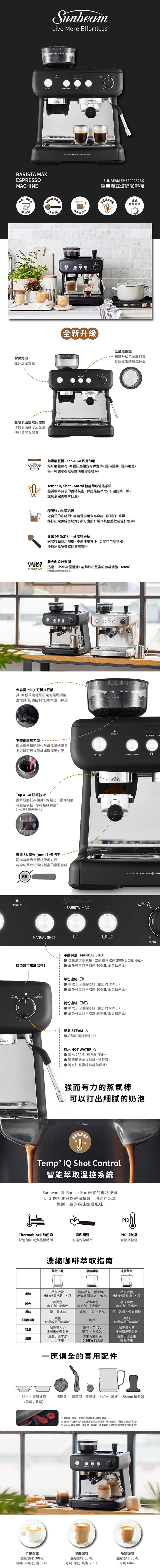 自動萃取系統:自動萃取最佳最適量的義式濃縮咖啡(單杯/雙杯.手動份量)