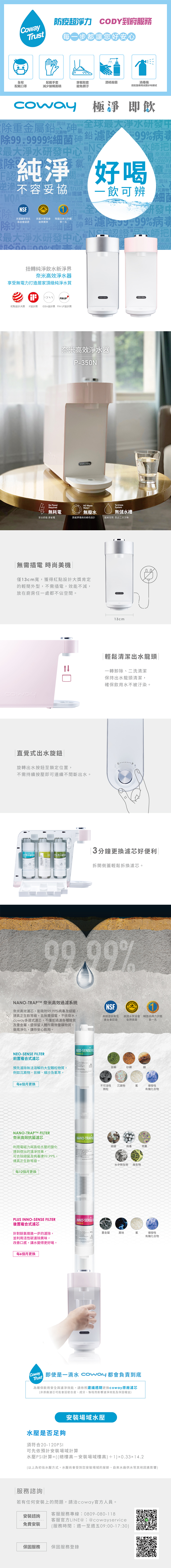 ◆ 去除99.99%細菌病毒,獨家淨水Nano-trap科技