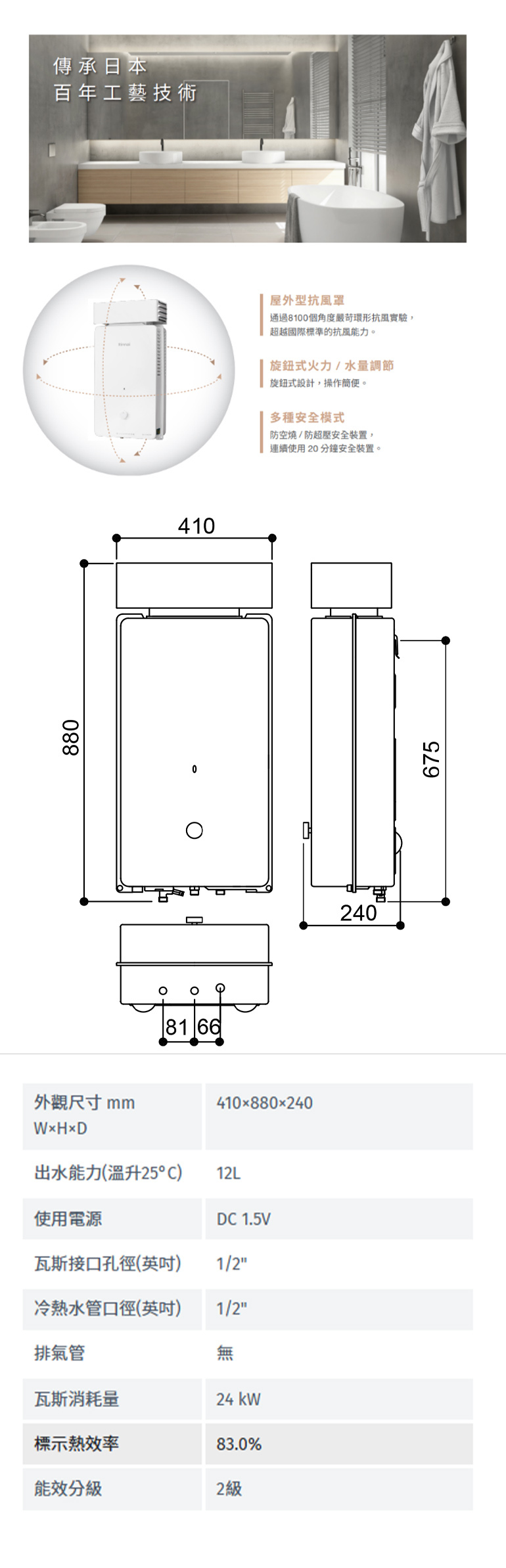 每分鐘熱水量製熱能力(溫升25度) 12/ min
