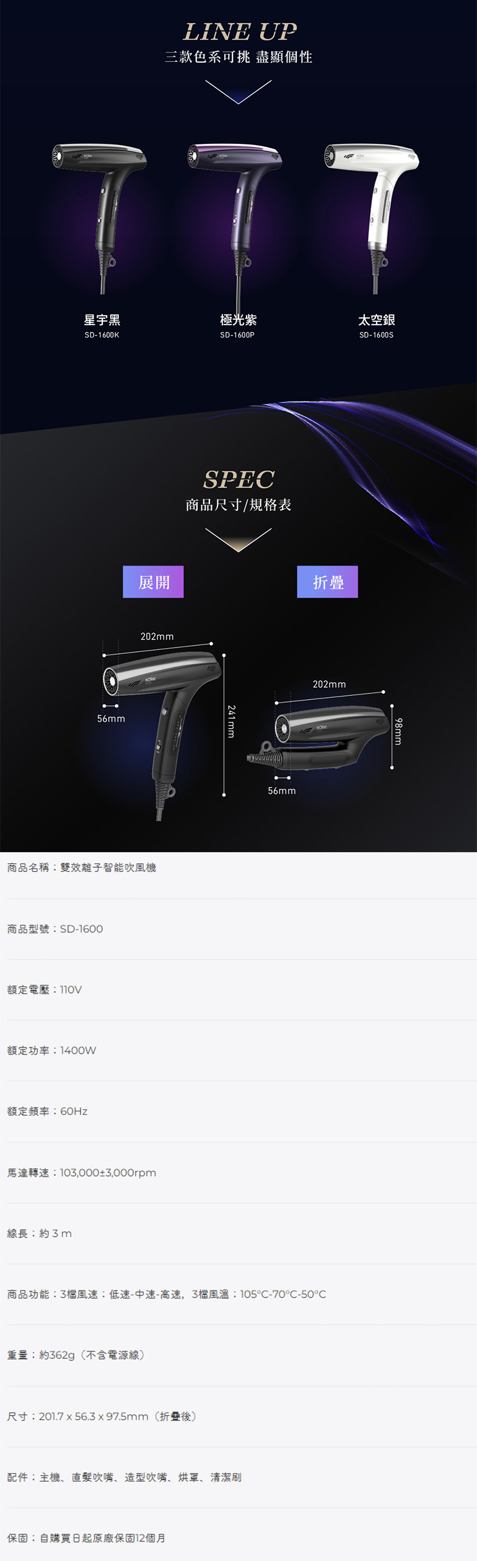 ・內附直髮吹嘴、烘罩、造型吹嘴、清潔刷