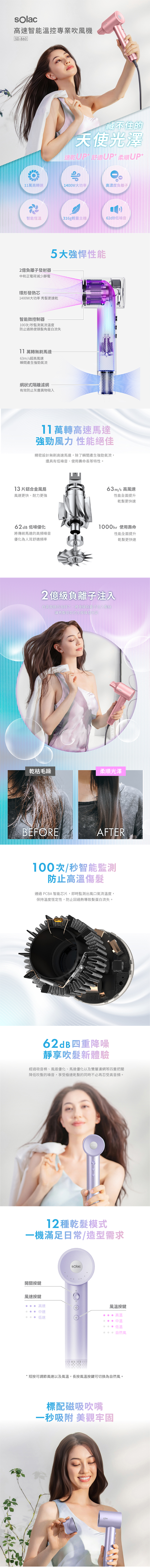 ・12種乾髮模式長按溫風按鍵可切換為自然風