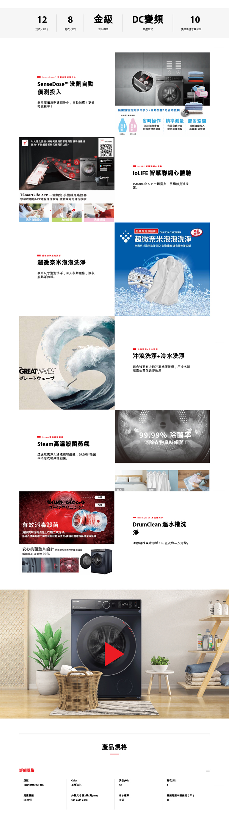 東芝自動偵測投入洗劑,TSmartLIfe 讓家事更輕鬆! 東芝獨家超神奇洗淨技術,超微奈米泡泡! 奈米尺寸泡泡深入衣物纖維,有效減少衣物汗漬、皮脂、黃斑殘留!