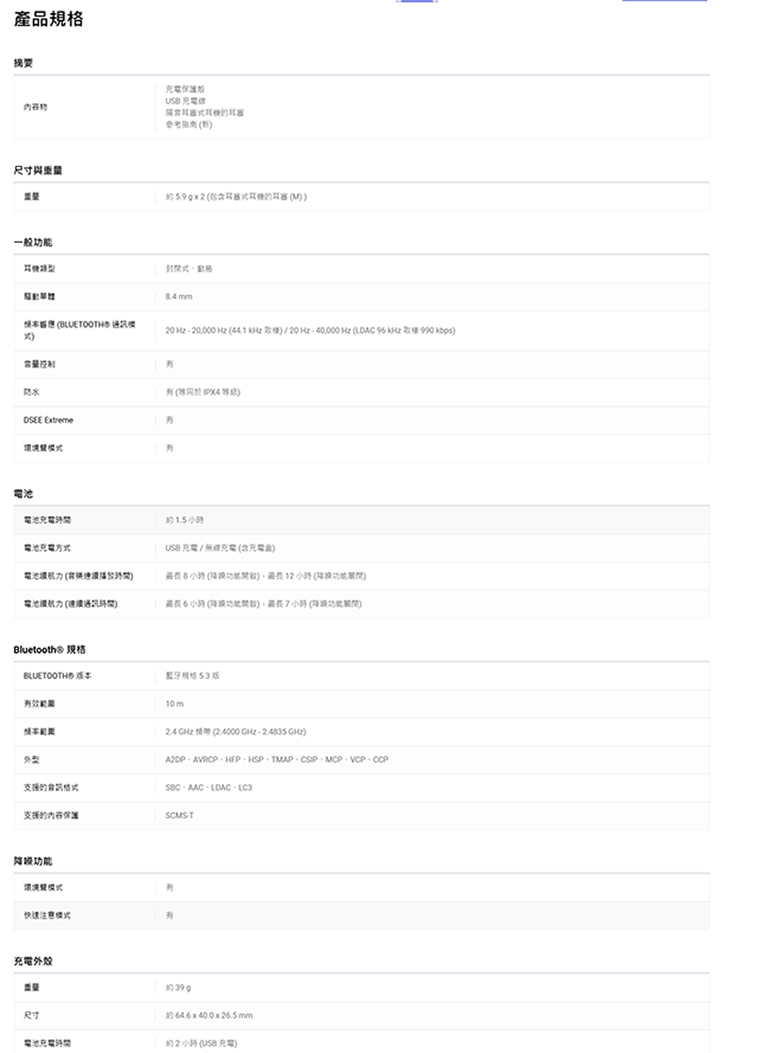 ■ 單耳5.9g,續航8/12小時(降噪開/關)